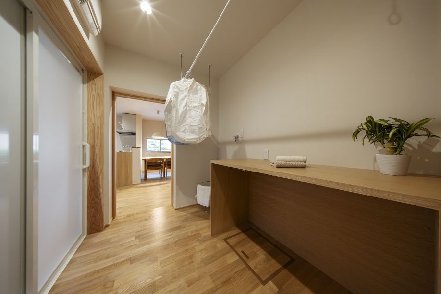 「洗う、干す、畳む」がその場で完結するランドリールームを設け、家事時間の短縮も実現。60代からの暮らしでは、家事の効率化が生活の質に直結します。