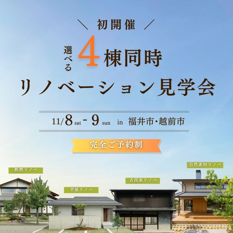 11/8(土)平屋リノベin越前市,11/9(日)平屋リノベin越前市,11/8(土)断熱リノベin福井市,11/9(日)断熱リノベin福井市,11/8(土)自然素材リノベin福井市,11/9(日)自然素材リノベin福井市,11/8(土)古民家リノベin福井市,11/9(日)古民家リノベin福井市,11/8(土)複数棟希望,11/9(日)複数棟希望